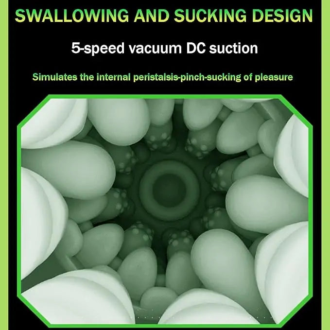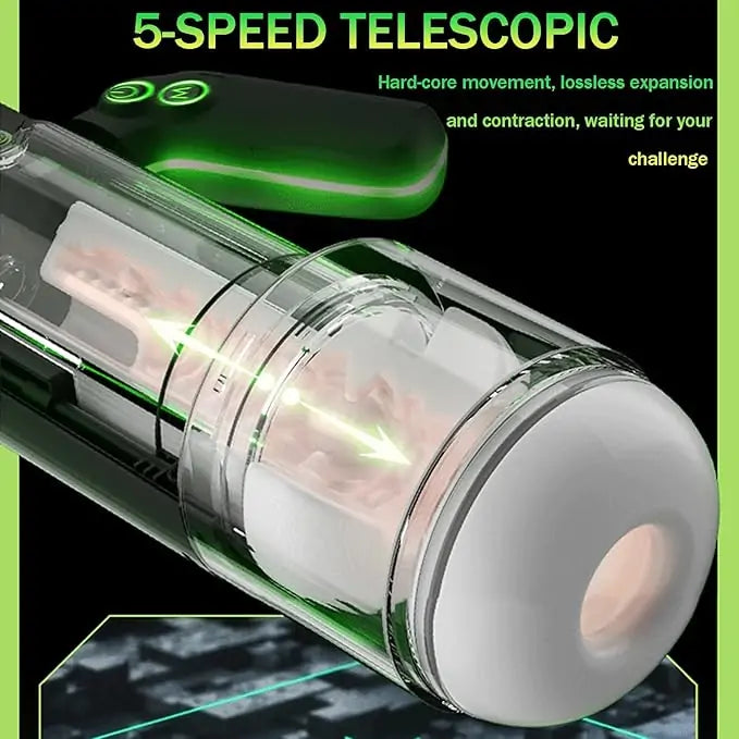 Inside, a powerful motor delivers 5 telescopic push-and-pull modes paired with suction. The smooth expansion and contraction create a natural rhythm that feels controlled rather than mechanical. The dual inner liner, made from soft TPE material, features a textured 3D structure that adapts to movement while maintaining consistent contact.