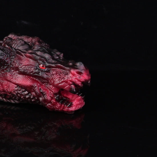 The Muspel is a substantial, dragon-themed stroker designed for users who appreciate detailed fantasy aesthetics and a realistic, heavy-duty feel. Crafted from ultra-soft platinum silicone, this "dragon head" model features a deep internal channel lined with complex textures for a varied experience.