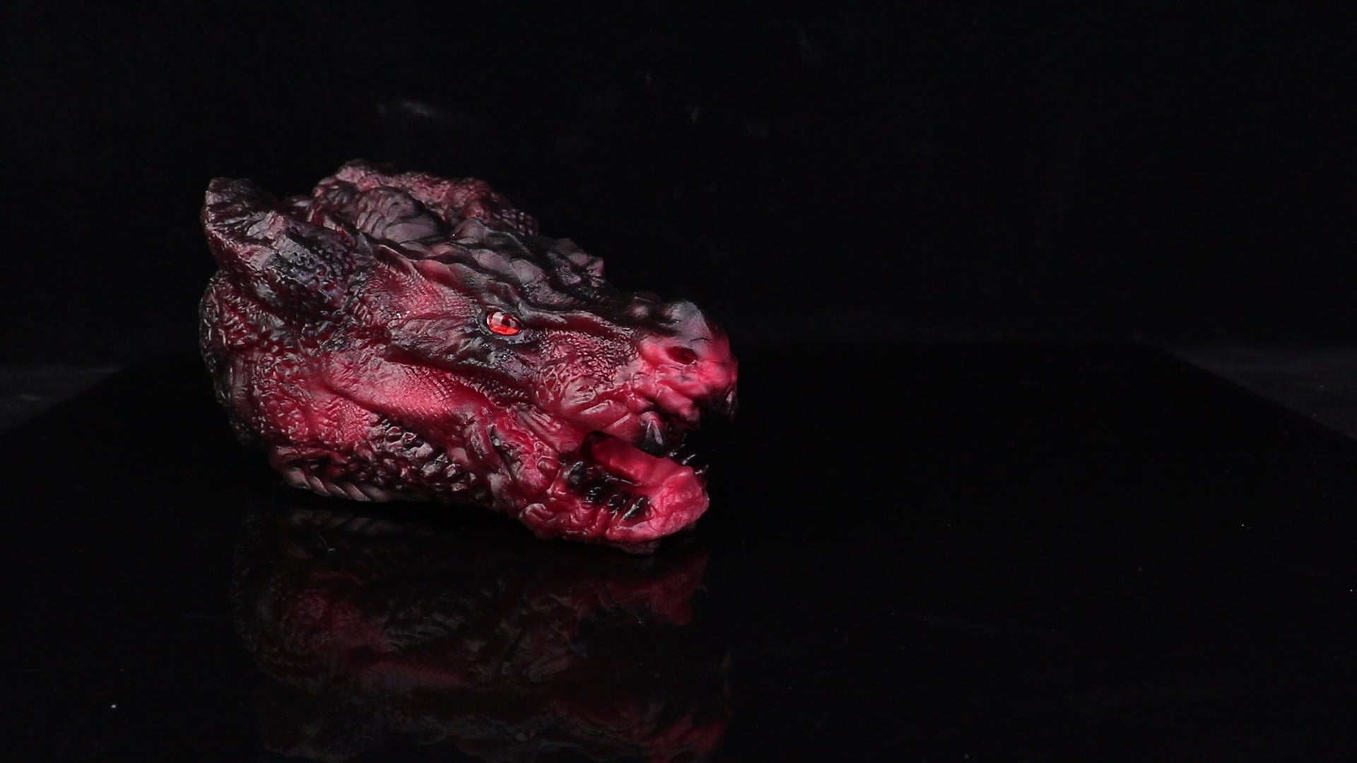 Fantasy Aesthetic: Features a detailed "Ember of Devouring Fire" dragon head design with realistic scales and glowing red eyes.