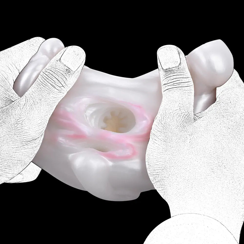 Inside, the canal features 3D textures and ribbing, adding pressure and stimulation that feels snug and satisfying. The design offers two different entrances, each with its own internal shape and intensity, giving you more variety in sensation and pacing.